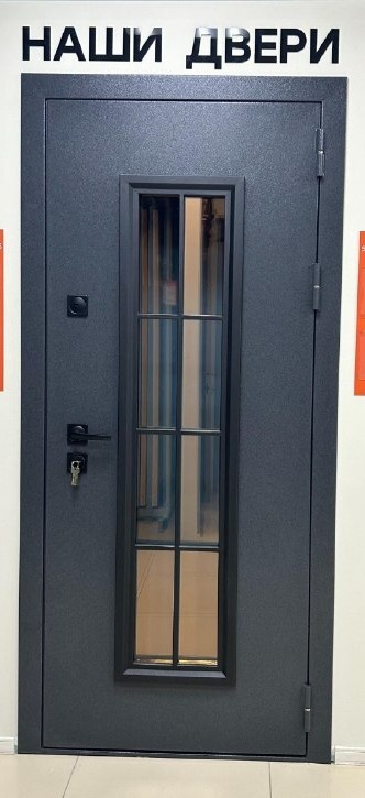 Входная дверь «Бристоль» — ваш надежный защитник и элегантное украшение фасада! Толстое полотно 100 мм с атмосферостойкой краской Азко Нобел (Azko Nobel) серо-синего цвета сохранит первозданную красоту даже в суровых условиях. МДФ-панель и минеральная плита обеспечат тепло- и звукоизоляцию. Третий контур уплотнителя защитит от сквозняков. Три противосъёмных ригеля по 12 мм и замки 4-го класса взломостойкости Гардиан гарантируют безопасность. Толстая коробка утеплена для комфорта. Тонированный стеклопакет с ковкой добавят изысканности вашему дому!