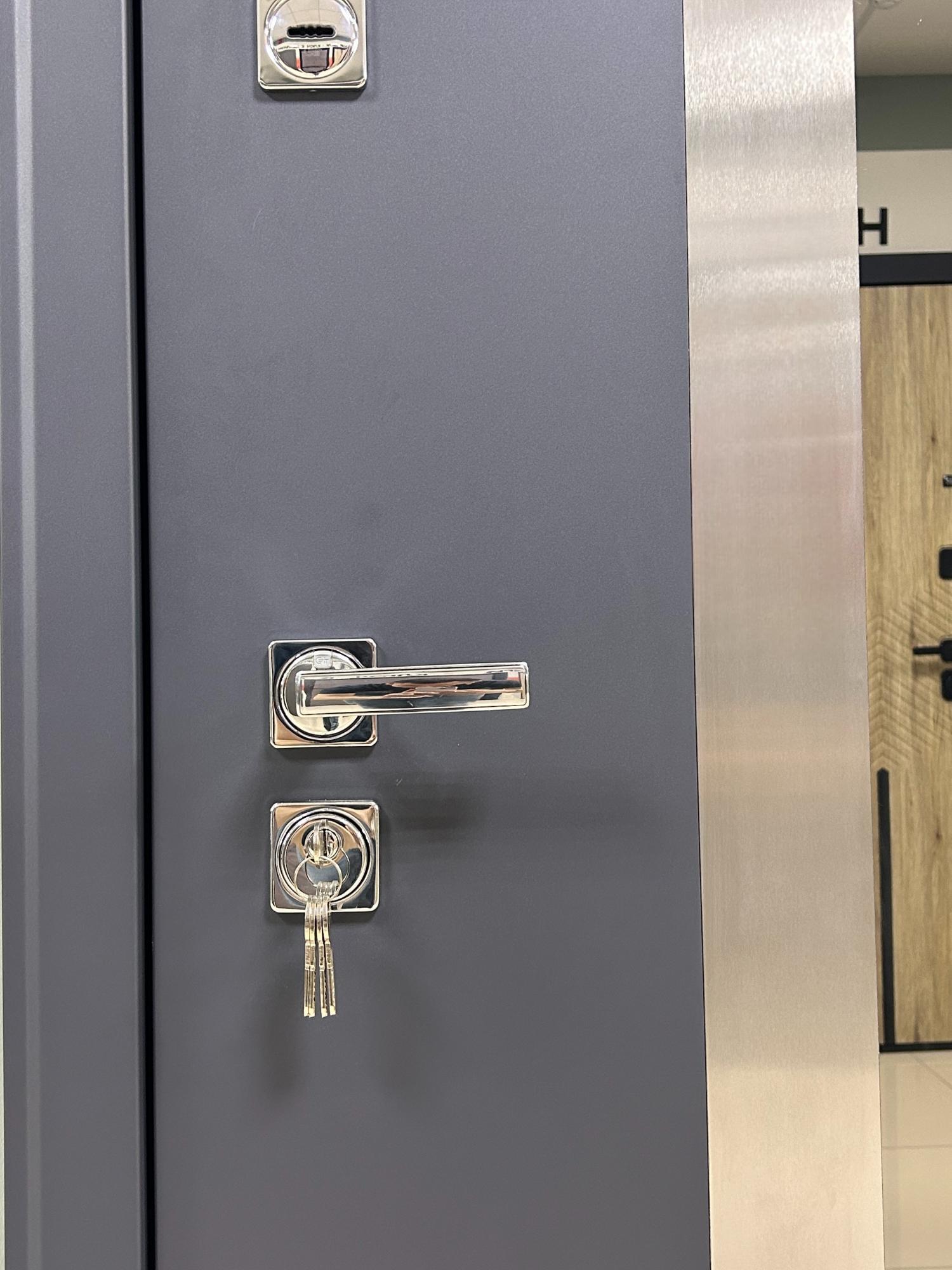 Прекрасная возможность защитить свой дом от холода и непрошенных гостей! Наша дверь входная Чикаго THERMO обеспечивает надежную защиту благодаря толщине полотна 110 мм и усиленной конструкции терморазрыва. Она оснащена двумя замками высокого класса взломостойкости, противосъемными штырями и ночной задвижкой для дополнительной безопасности. Стильная внешняя отделка цвета муар графит дополнена зеркальным остеклением, что делает вашу входную зону светлой и просторной. Внутри же вас ждет уютный белый матовой цвет МДФ-панели. Благодаря трехконтурному уплотнителю ваша квартира будет защищена от сквозняков и шума улицы. И все это по очень привлекательной цене!