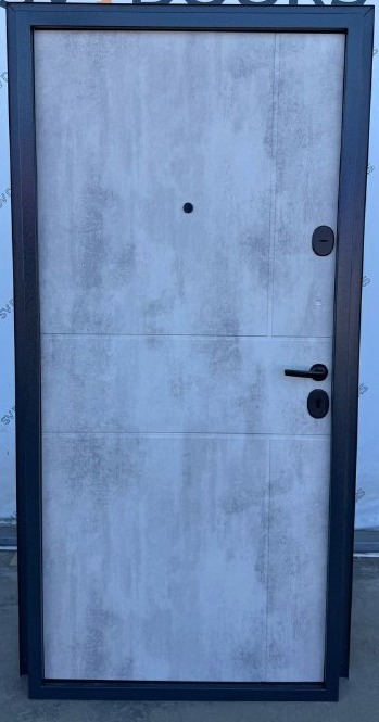 Входная дверь «Дели» — ваш надежный защитник и стильный акцент интерьера! Металлическое полотно толщиной 80 мм с атмосферостойкой краской от Akzo Nobel сохранит первозданный серый оттенок долгие годы. Внутри – изящное оформление из фрезерованной МДФ-панели цвета бетон. Два контура уплотнителя обеспечат тепло- и звукоизоляцию, а вспененный пенополистирол добавит комфорта, а противовзломные петли, сувальдные замки третьего класса, ночная задвижка гарантируют безопасность. Глазок по центру завершает дизайн этой надежной двери!