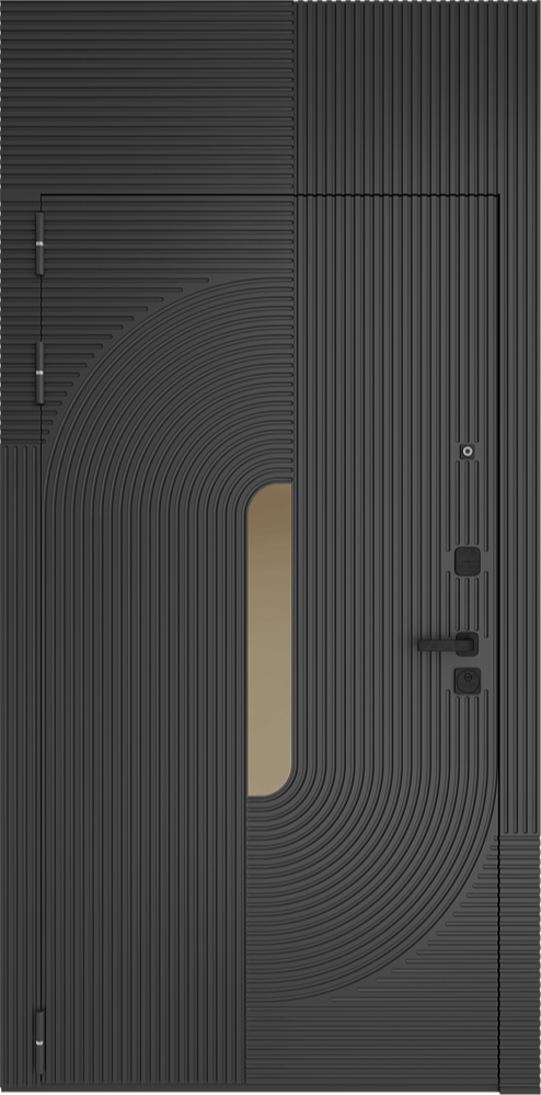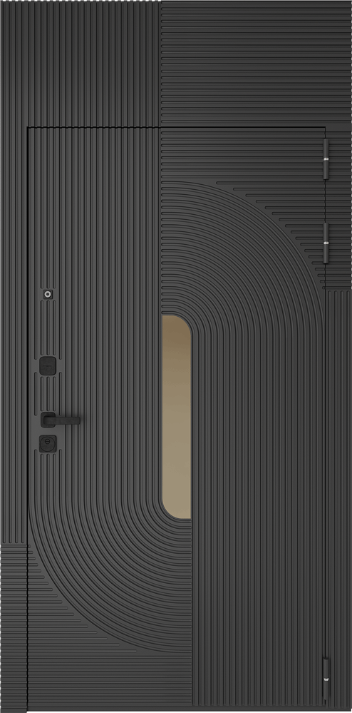 Входная дверь «Импресс» — ваш надежный защитник и стильный акцент интерьера! Толстое полотно (110 мм) и три класса защиты обеспечат безопасность вашего дома. Три замка повышенной надежности, противосъемные штыри и ночная задвижка гарантируют спокойствие ночью. А элегантное сочетание черного цвета, вставки лакобель золото и зеркальной внутренней отделки придадут изысканность вашему дому. Удобно и надежно – открывайте с уверенностью!