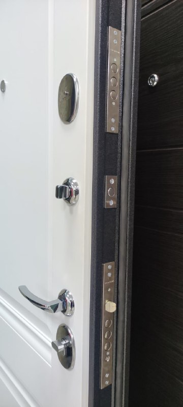 Вашему вниманию представлена надежная и стильная входная дверь модели "Мега Калипсо"! Она обеспечит вам безопасность благодаря толщине металлического листа в 1,5 мм как на полотне, так и на коробке. Кроме того, она оснащена двумя замками от известного производителя Guardian – основным цилиндровым и дополнительным сувальдным. Для вашего удобства предусмотрены ночная задвижка и глазок с широким углом обзора в 180 градусов. Входная дверь "Мега Калипсо" обладает отличными теплоизоляционными свойствами благодаря наполнителю из пенополистирола и двум контурам уплотнения. А разнообразие размеров позволит подобрать оптимальный вариант именно под ваш дверной проем. Вы можете выбрать левостороннее или правостороннее открывание двери. Эстетика также учтена во всех деталях данной модели. Современное полимерно-порошковое покрытие черного цвета снаружи дополнено декоративным элементом "Гамма-Т". Внутри же вас ждет царговая панель модель M-22 оттенка белоснежного матового (Аляска). Хромированные детали завершают элегантный образ этой входной двери.