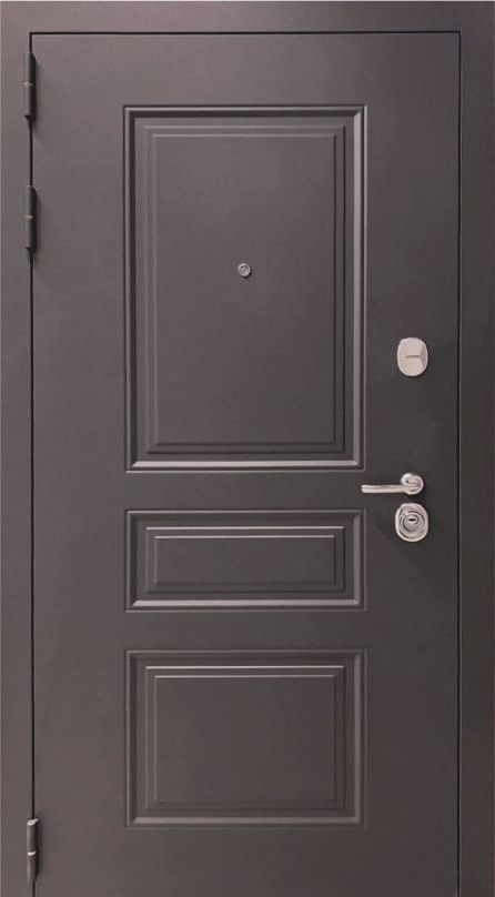 Представляем прочную и надежную входную дверь! С толщиной полотна 103 мм она обеспечит защиту вашего дома от посторонних вторжений. Металлическое покрытие с цинком и тремя квадратами, утепленная минеральной плитой и вспененным пенополистиролом конструкция гарантирует сохранение тепла и тишины внутри помещения. А стильный серо-коричневый цвет снаружи и белоснежная МДФ-панель внутри создадут элегантность интерьера. Дверь оснащена сувальдным замком четвертого класса взломостойкости бренда "Гардиан", тремя внешними петлями и раздельной ручкой – ваш комфорт и безопасность гарантированы!